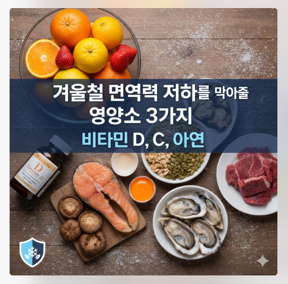 겨울철 급격한 기온 변화로 무너진 면역력을 회복하기 위한 3대 필수 영양소(비타민 D, 비타민 C, 아연)에 대해 심도 있게 알아봅니다. 각 영양소의 과학적 효능부터 효율적인 섭취법, 주의사항까지 알아보도록 하겠습니다.